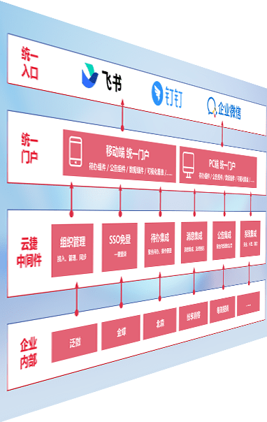 对协作平台提供支持服务,,,支持企业应用与协作平台对接,,,包含组织同步、、、、消息集成、、、待办集成等。。支持目前主流的协作平台:钉钉、、、企微和飞书。。。。